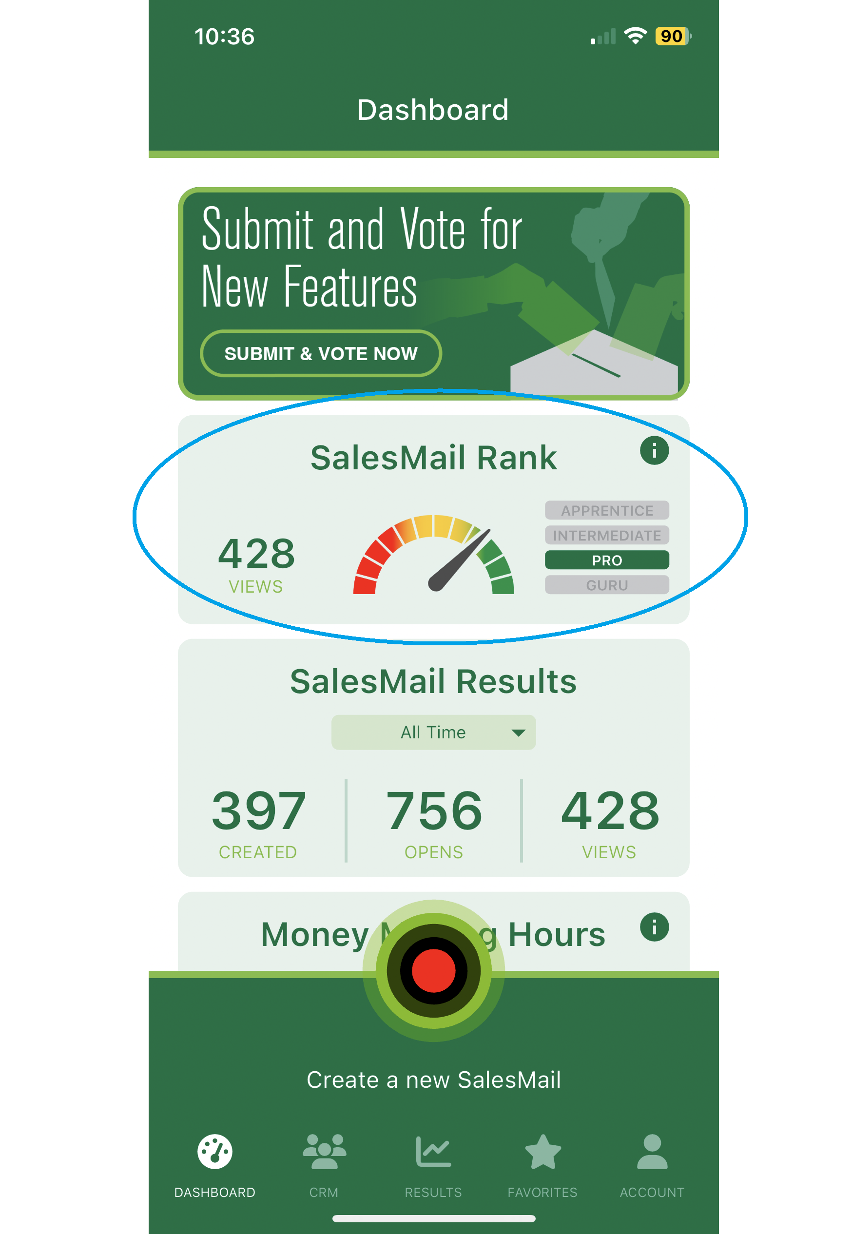 rank up to the next level. Click the info icon on the SalesMail Rank panel in your mobile app or scroll down below to see the view counts needed for each rank. Learn how to get more views here:
