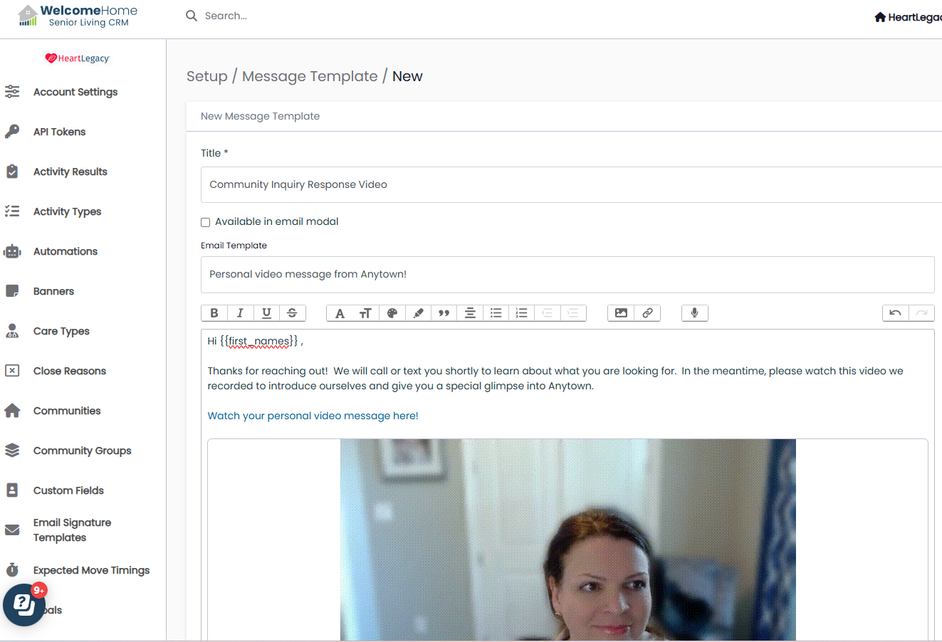 Here are the instructions to set up a WelcomeHome Message template that can be used in those automations (or by the team as needed) in such a way that when the video is viewed, SalesMail will tell you the name of the prospect the video went to!