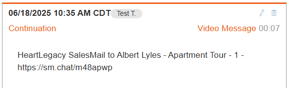 4. Once sent, your SalesMail will be auto-documented in Sherpa as a completed Video Message journal entry with a link to the SalesMail video and “Time in the Selling Zone” (TSZ) is populated based on the length of the video.