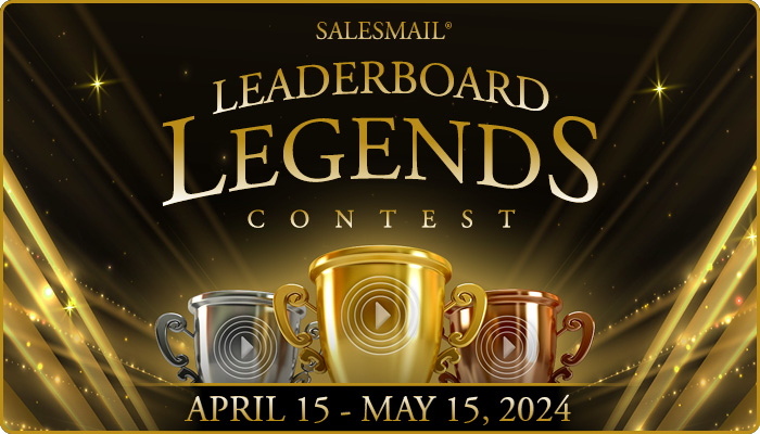 It is time for our new SalesMail contest - Leaderboard Legends! We want YOU to break into your organization's top 10 on the new My Org Leaderboard in SalesMail. Five lucky winners will win a $100 value prize!