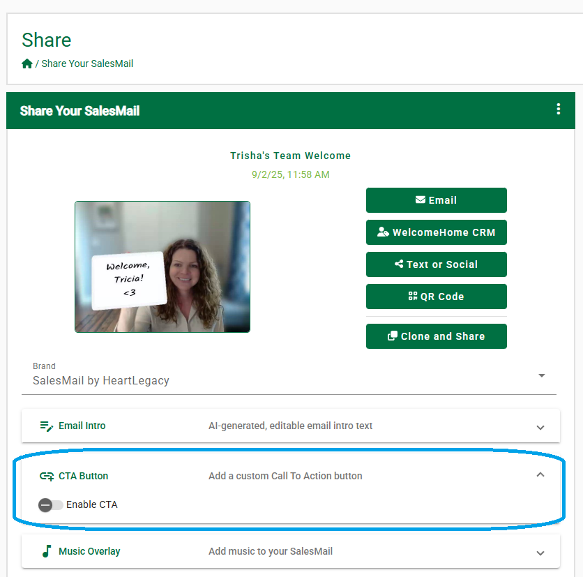 - May I have a different CTA button on each SalesMail video I record?