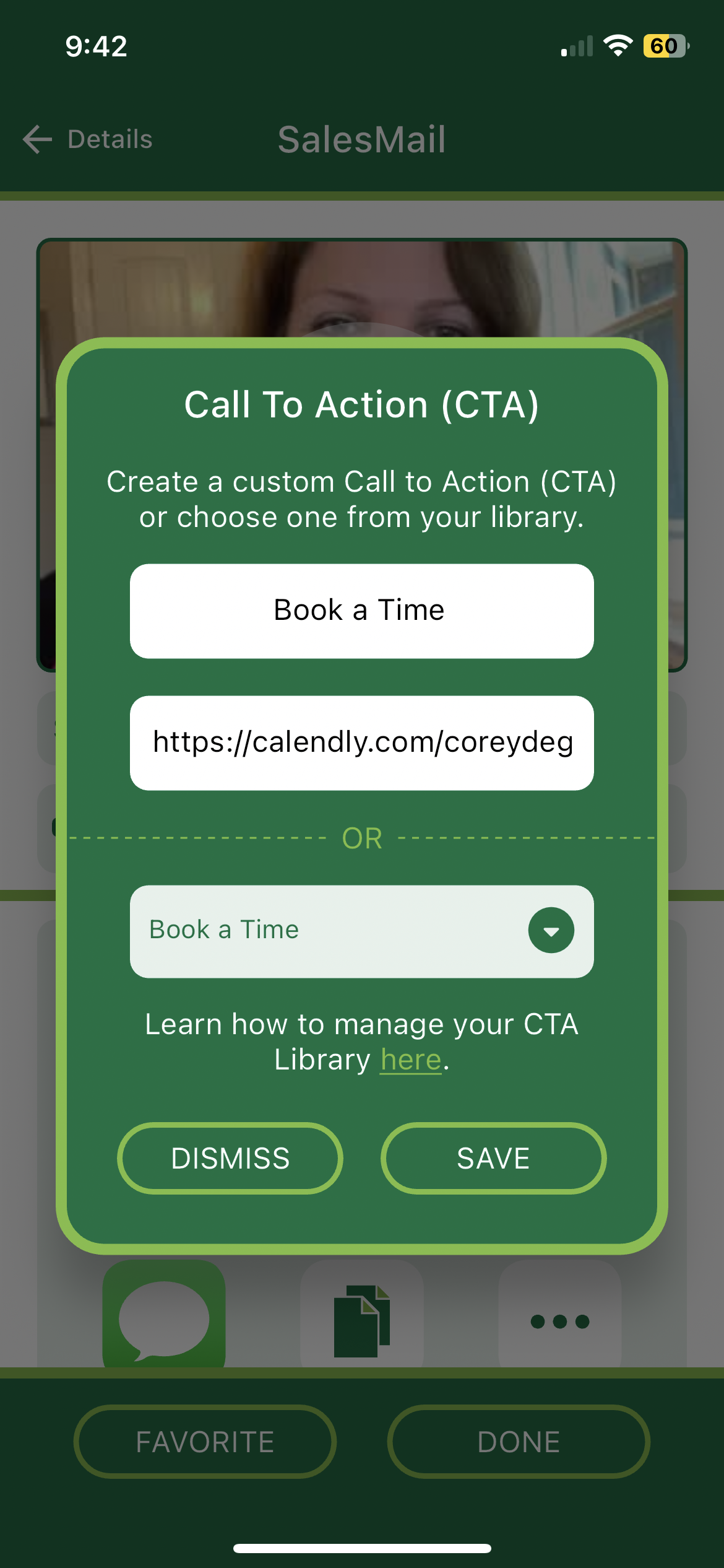 SalesMail Portal. This is where you manage the CTA buttons that you want to be able to easily choose from when adding a CTA button to a video.