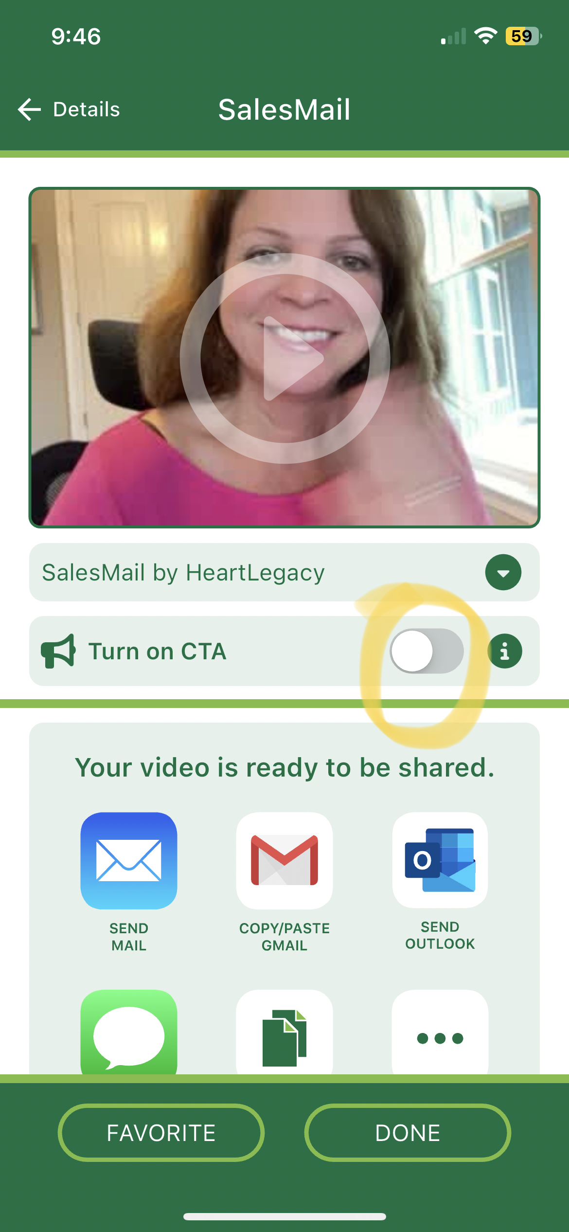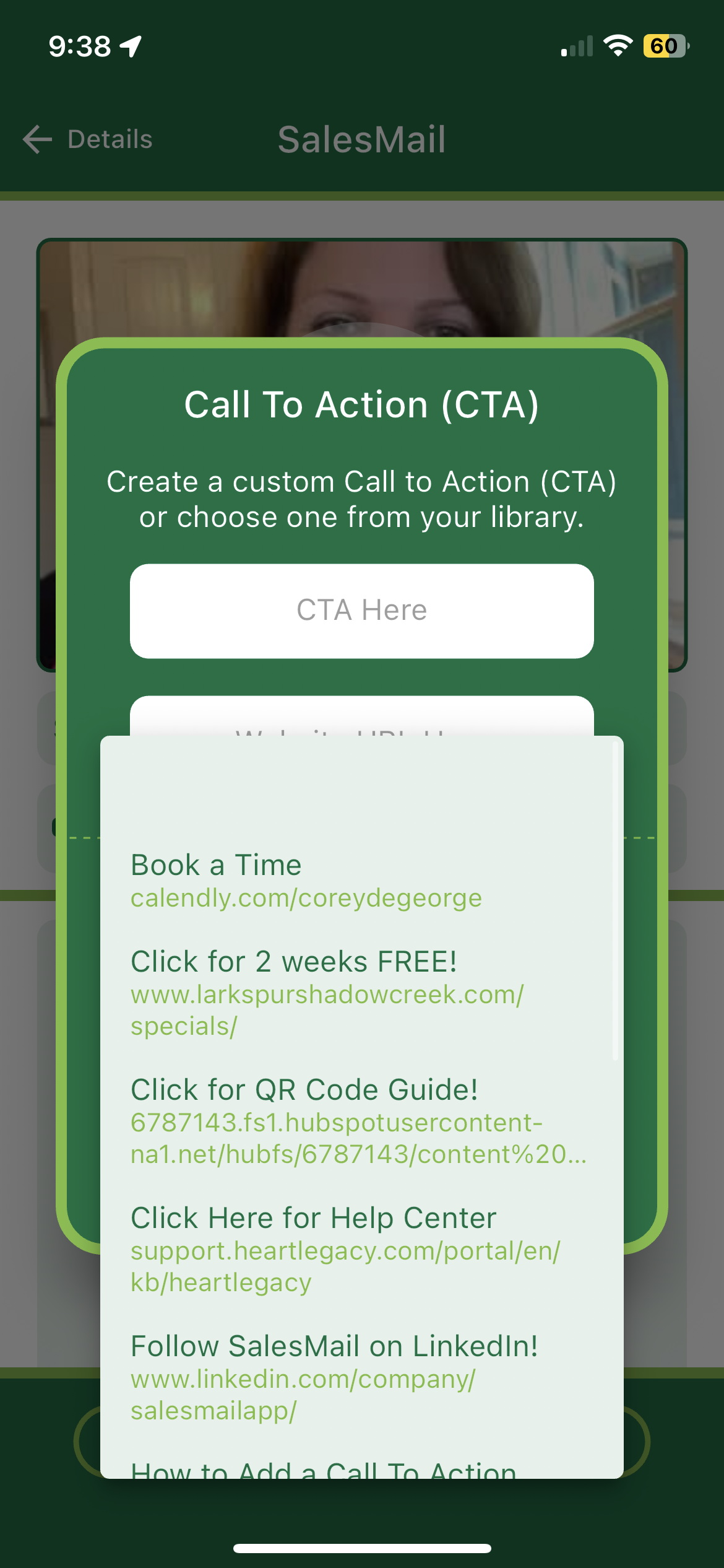 Here is where you'll find the new CTA library drop down in your SalesMail mobile app: