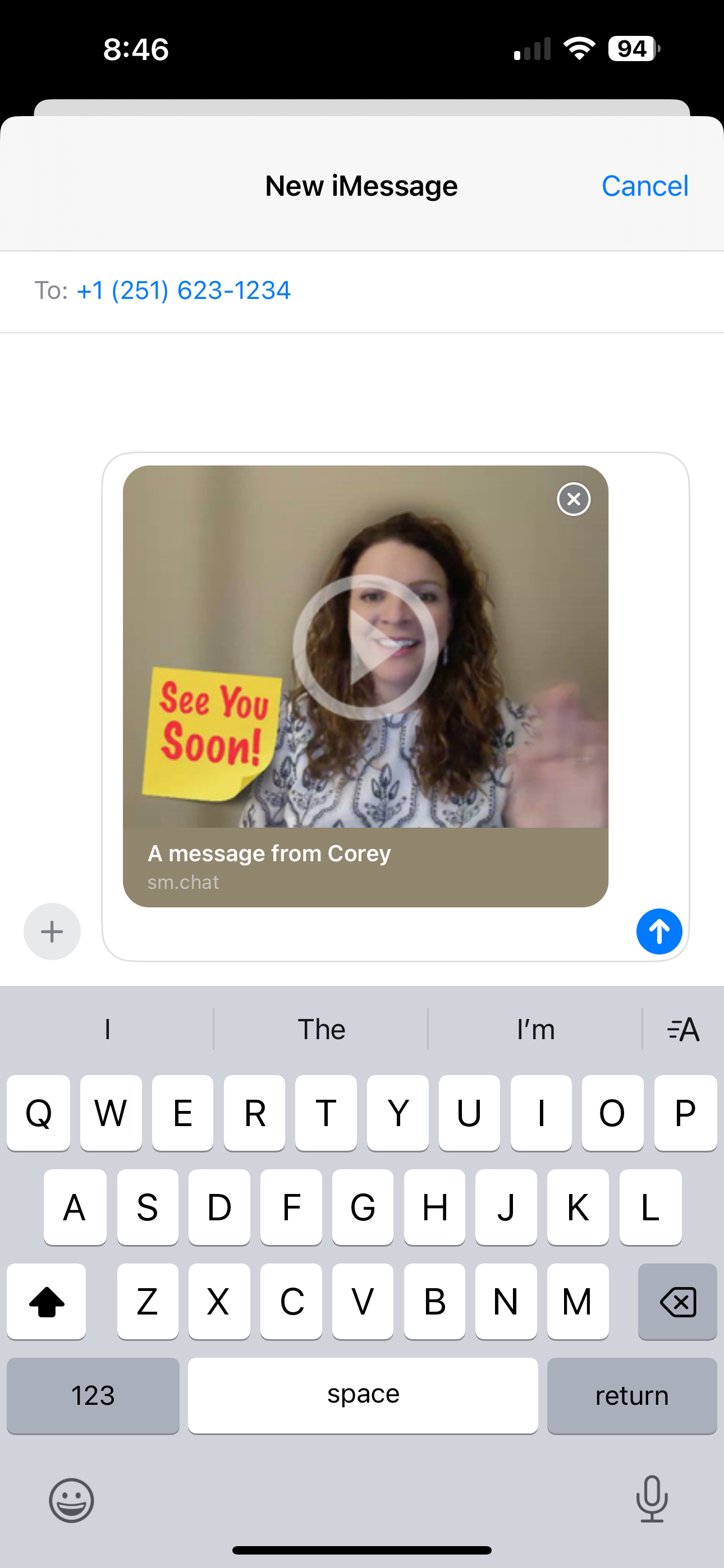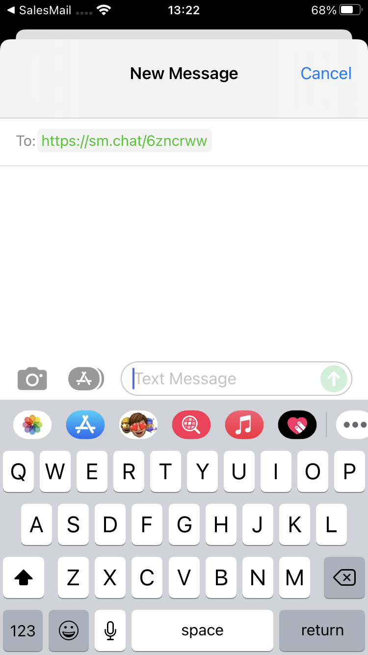 On rare occasion, we have seen the SalesMail video link get pasted into the To box instead of the text message body when a SalesMailer hit 'Send Message' to share via text on an iPhone (like below).
