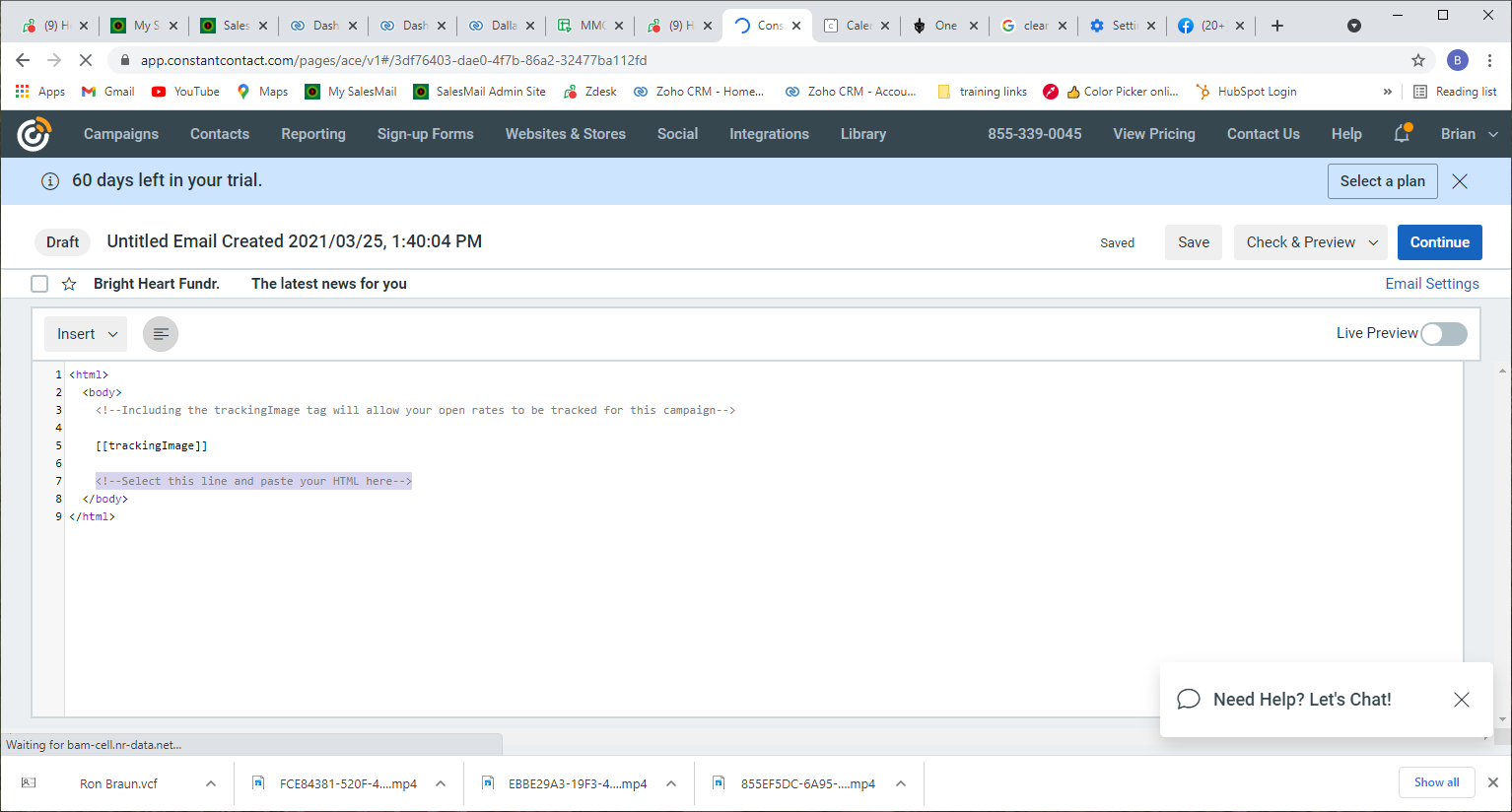 Within Constant Contact select 'Campaigns' from the top menu and choose to create a new email campaign. The next screen will default to selecting a template for your email. The tab next to 'Template' is 'Custom Code'. Select this tab. When the 'Custom Code' option loads, line 7 will read: